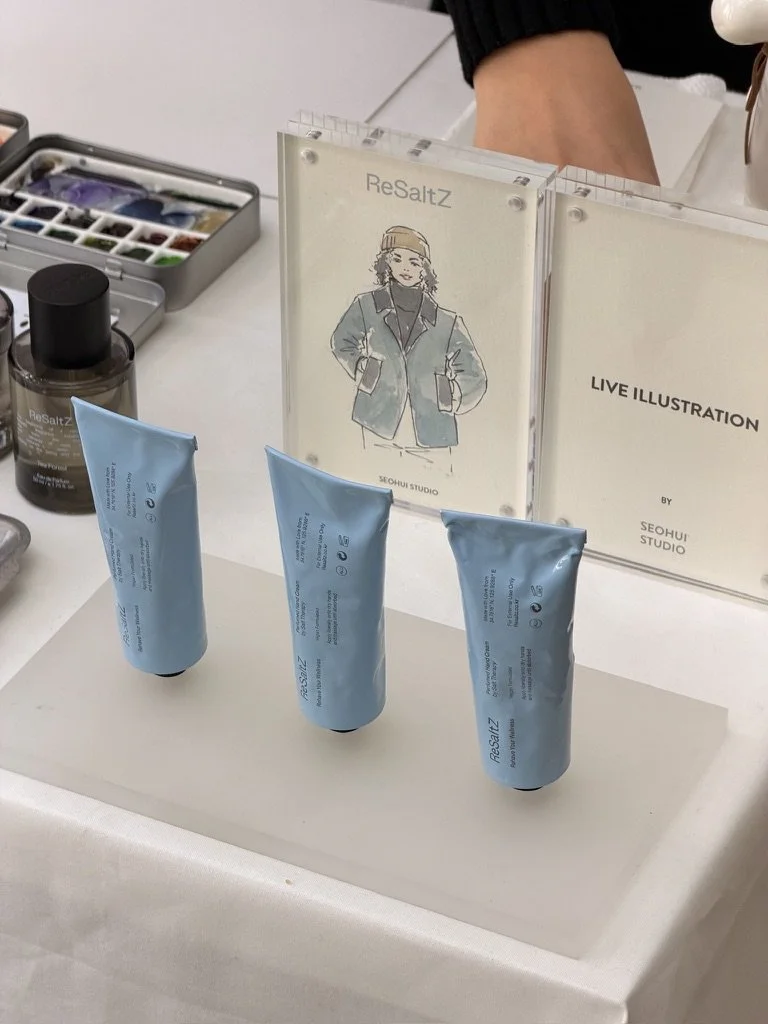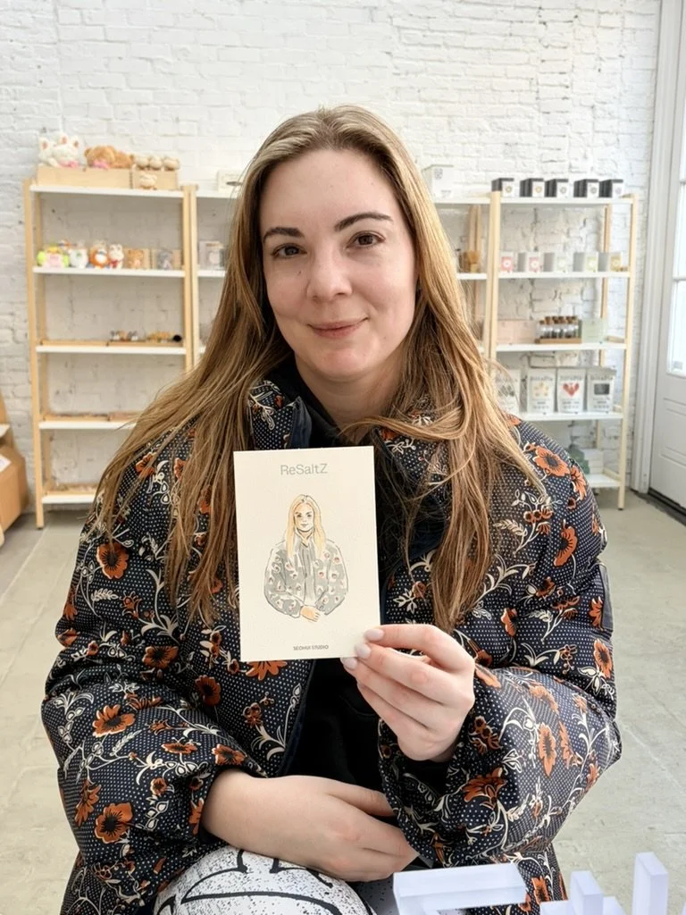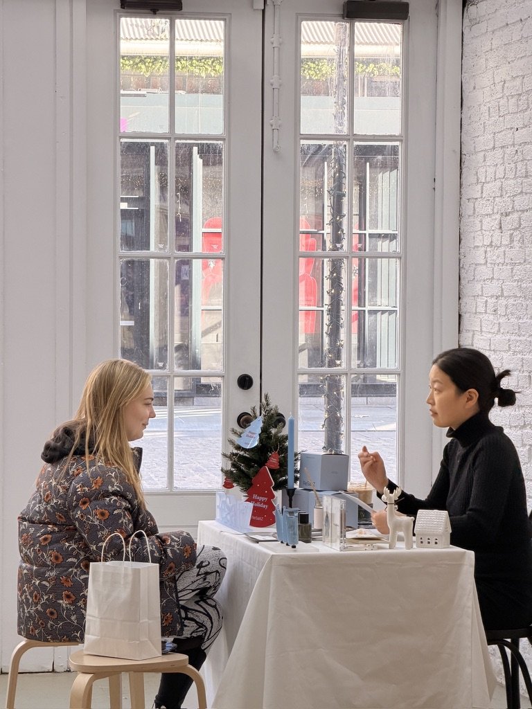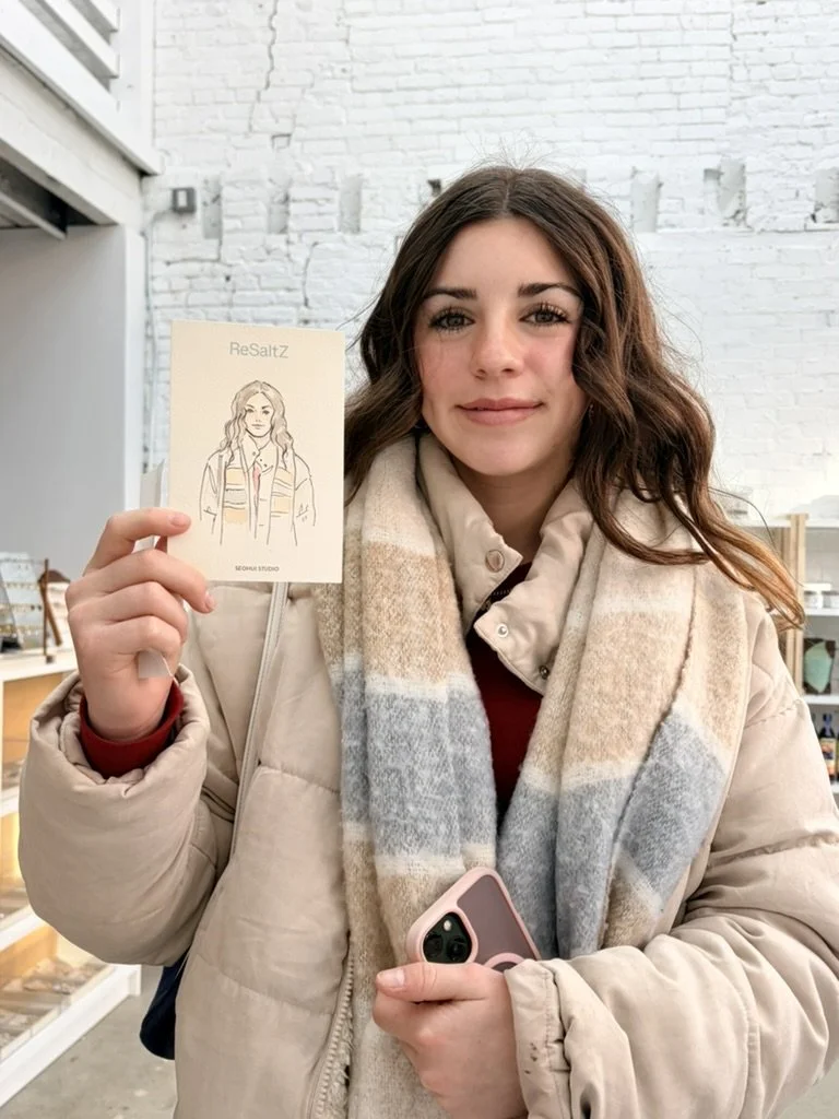 Portrait live event illustration experience in celebration Paper & Perfume Pop-up by ReSaltZ at MAUM Store in South Street Seaport, NYC.